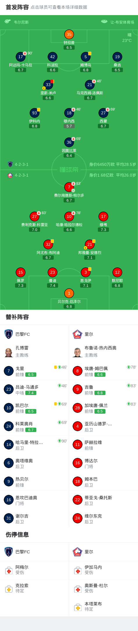北京时间4月26日法国足球甲级联赛第31轮,巴黎FC主场对阵里尔。比赛中,里尔球员费尔南德斯-帕尔多罚入点球;巴黎FC球员凯巴尔点球罚丢,随后该队球员里斯-米卢吃到第二张黄牌。最终比分巴黎FC 0-1里尔。