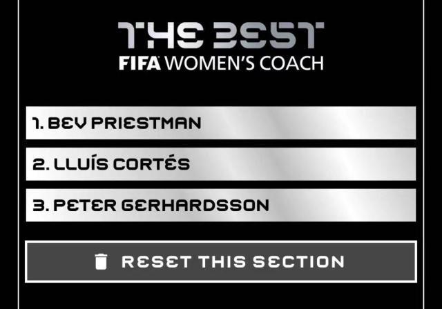 带领加拿大女足创造历史拿到奥运金牌的普利斯特曼、2021年俱乐部三冠王教头科尔特斯以及率队击败美国队的瑞典女足领导者耶哈德松,是上一年度最成功的的三位女足主帅。