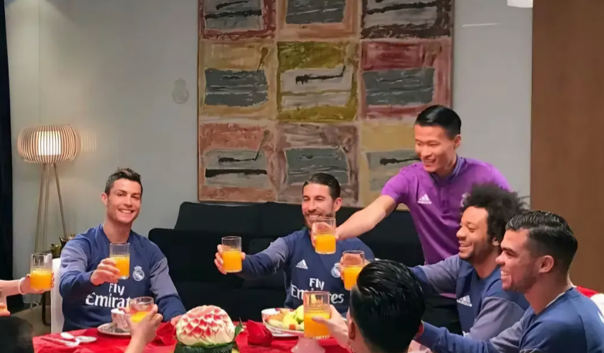 在效力皇马期间,林良铭组织一次皇马内部聚餐,C罗、马塞洛、水爷以及佩佩等巨星全部到场,在敬饮料环节,林良铭是站着的,小伙子的为人处世,也获得一众好评。