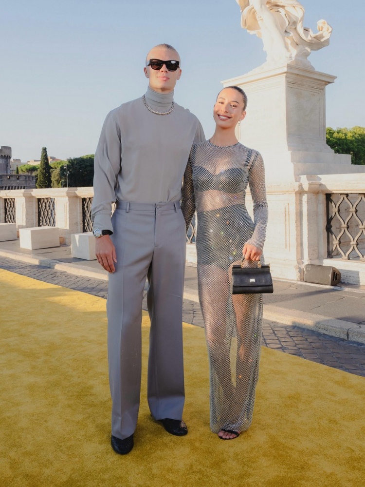 哈兰德社媒晒出与伊莎贝尔的合照,配文:“当你在罗马,穿衣也要入乡随俗。”
